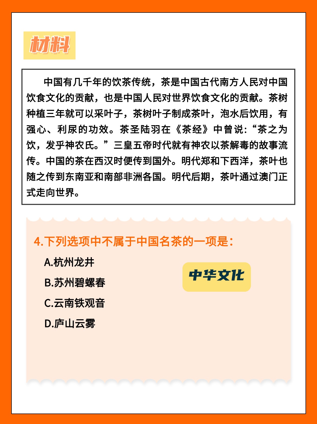 围绕一段材料,设计3-6个题目。
